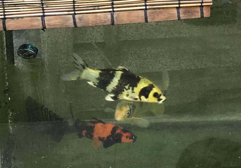 大工さんのしゃれ心で作ったという井戸桶、御主人が育てている愛らしい金魚も