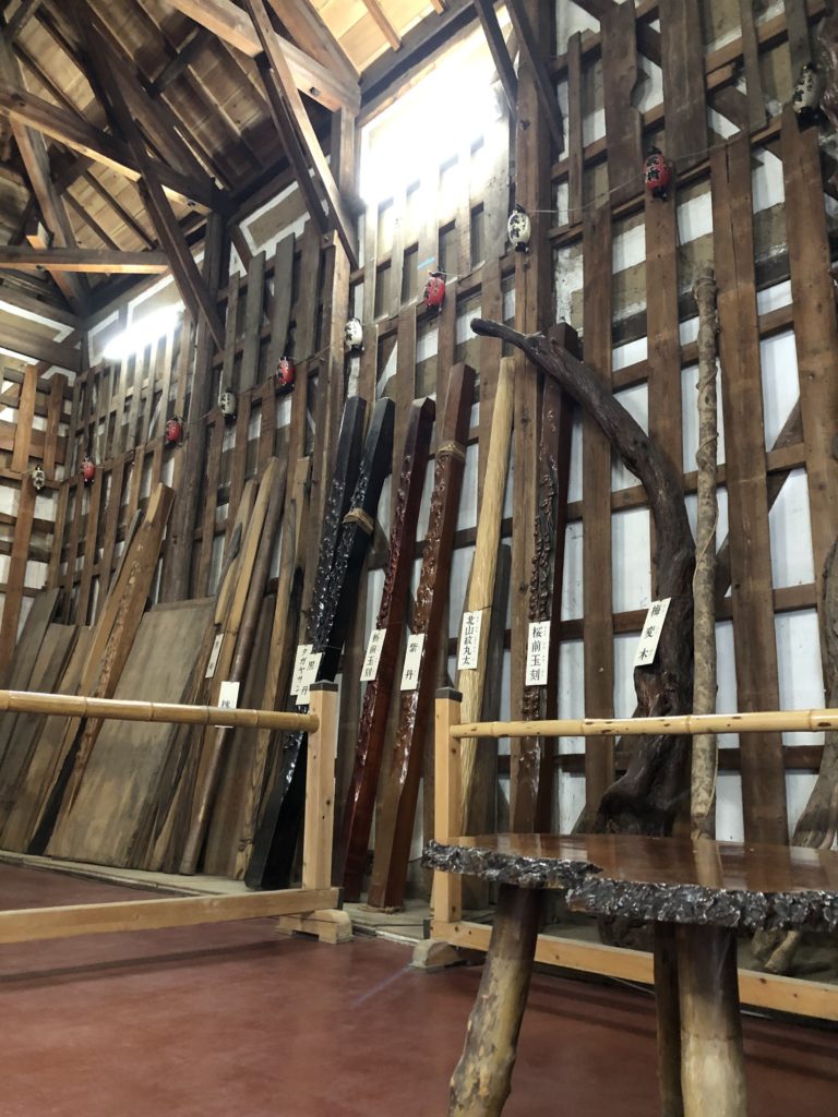 巴波川の光景を作り出す土蔵は、塚田家が所蔵する数多くの骨董品や、全国から集められた珍しい木材などの名家たる由縁を物語る品々を約200点展示。屋久杉まであります!